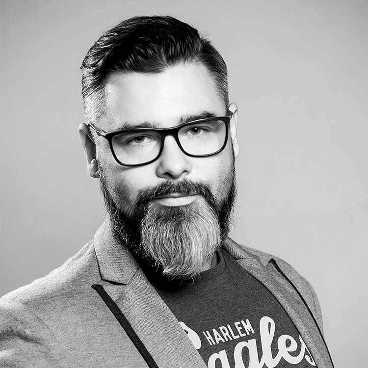 Bio: Gdańszczanin. W 2006 roku uzyskał dyplom na Akademii Sztuk Pięknych w Gdańsku na wydziale Malarstwa i Grafiki, kierunek Grafika. W pracy zawodowej związany z prestiżowymi krajowymi i międzynarodowymi firmami. Współpraca z firmami z branży modowej rozbudziła w nim pasję i potrzebę rozwoju w kierunku designu i projektowania odzieży. Uzupełnieniem tych działań artystyczne autorskie sesje fotograficzne. W działaniach tych wykorzystuje graficzną, cyfrową obróbkę obrazu, eksperymentującą i poszerzoną o współistnienie z innymi dyscyplinami artystycznymi (np. body painting).Autor projektów licznych okładek publikacji naukowych uczelni, w tym Wydawnictwa Uniwersytetu Gdańskiego. Wiele z nich otrzymywało prestiżowe nagrody instytucji publicznych.